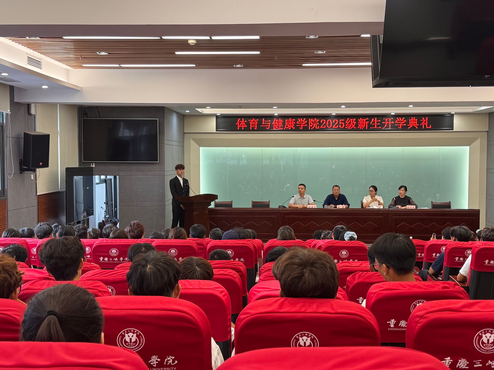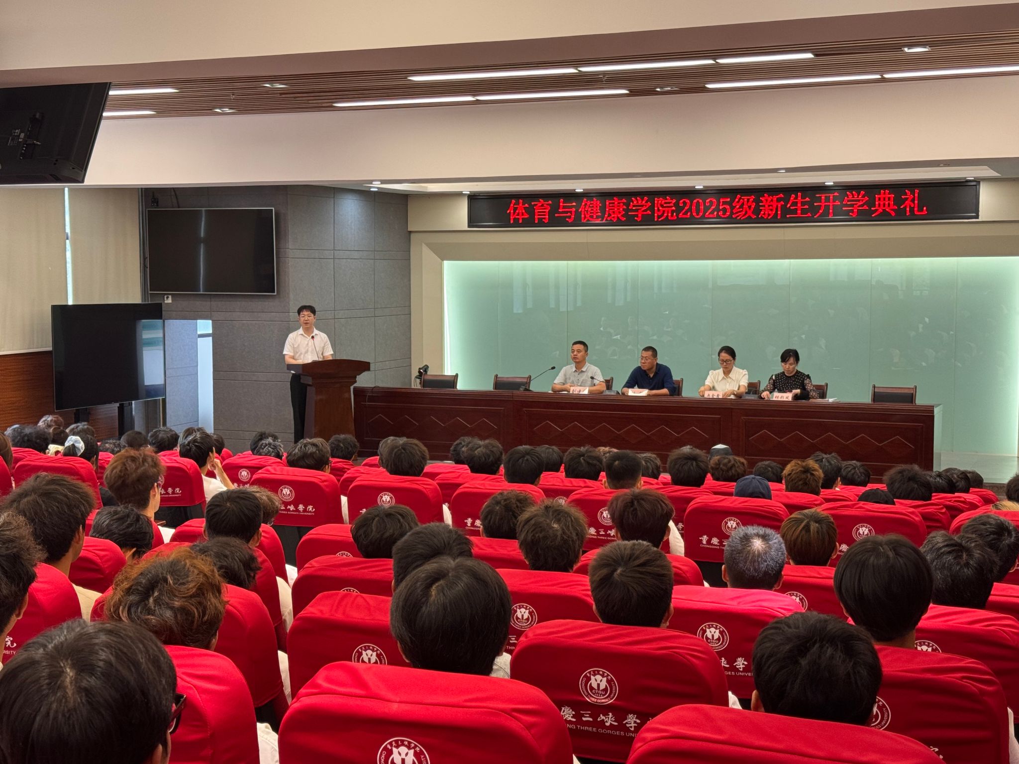 2025年9月28日,体育与健康学院在科技楼连廊会议室召开新生开学典礼,热烈欢迎2025级新生们的到来。学院领导班子、教师代表、老生代表等对全体新生表示欢迎,针对其大学学习、生活、社会实践等方面提出要求,希望全体同学秉承“学为人师,行为世范,尚武崇文,睿智健体”的院训,努力成长为能吃苦、能奋斗,理论素养扎实、专业技术过硬的新时代体育人,为学校高质量发展和体育强国建设作出一份贡献!